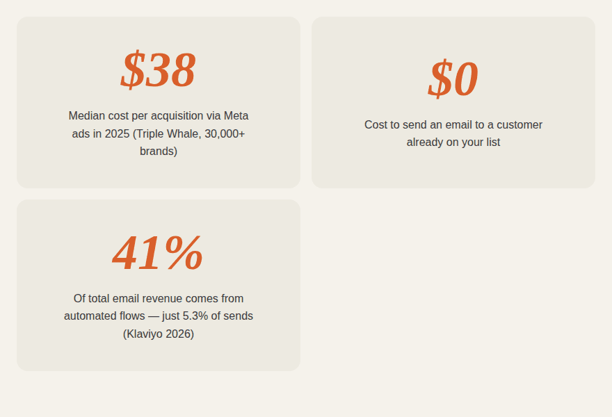 The brands winning in 2025 have figured this out. They use paid ads as an acquisition engine only — to get a stranger onto their list or to make a first purchase. Then email takes over completely. Every subsequent touchpoint, every repeat purchase, every upsell, every win-back: email.