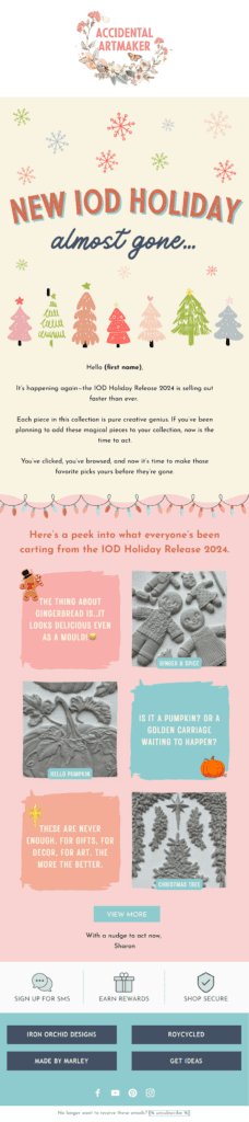 A holiday-themed email sparkled with festive colors and intricate design elements that felt as artistic as the products being sold.